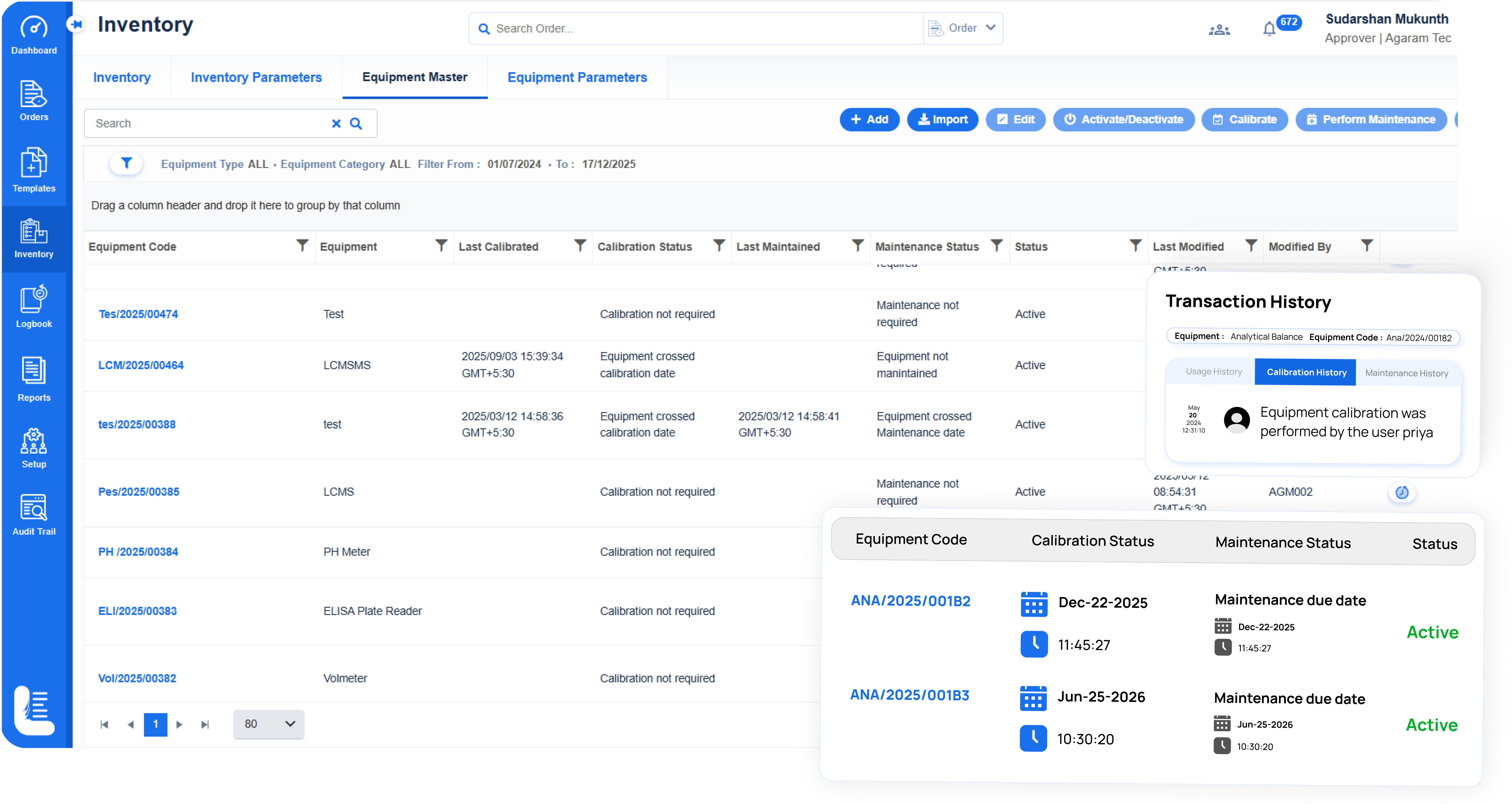 - Gérez les enregistrements d'étalonnage, de maintenance et de qualification des instruments.